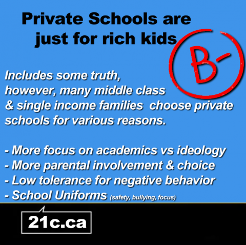 While there is a hint of truth in this, there are many middle-class and single income families that choose private schools for a variety of reasons.